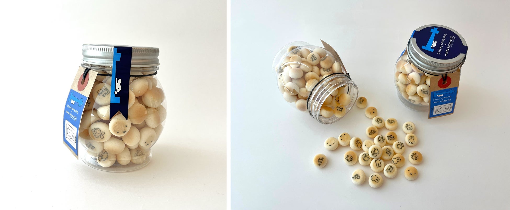 かわいいまんまるケースに入ったボーロ。よく見るとミッフィーや今回のイベントで登場するイラストがデザインされています。並べたくなるかわいさです。(※9月下旬以降の販売開始となる場合があります)