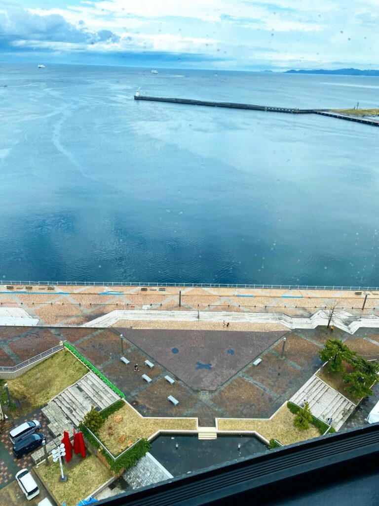 青森県観光物産館アスパム13階展望台から見えるミッフィーは快晴だとこんな感じ、何と雨だとメラニーちゃんに?!